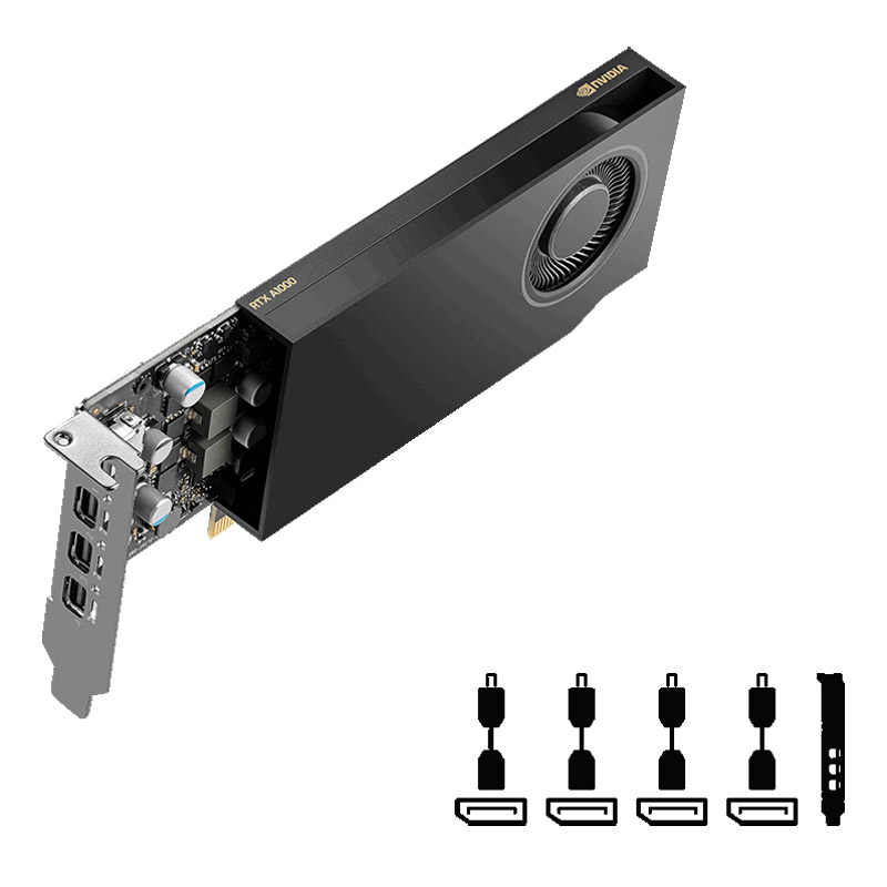 NVIDIA RTX™ A400, zgrajen na arhitekturi GPE NVIDIA Ampere, prinaša moč umetne inteligence in ray tracing pospeševanje v roke več profesionalcev. RTX A400 zagotavlja delovne procese, ki jih poganja umetna inteligenca, in osupljive ray tracing slike so dostavljene z zmogljivostjo brez primere v formatu, ki prihrani prostor v ohišju. Poleg tega lahko povežete do štiri zaslone, da razširite svoja vizualna obzorja.