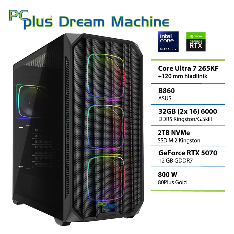 PCPLUS Dream Machine Ultra 7 265KF 32GB 2TB SSD RTX 5070 12GB gaming namizni računalnik
